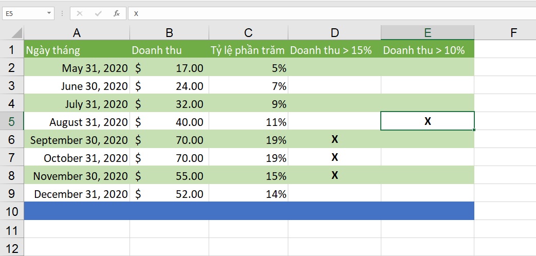 Bước 1: Chọn (các) ô mà bạn muốn sao chép. Trong ví dụ, chúng tôi chọn ô E5