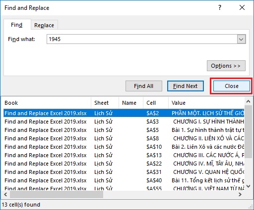 I. Tìm kiếm nội dung trong Excel 2019