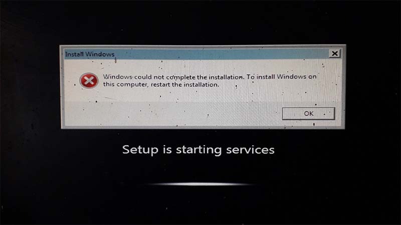 Lưu ý: Khi gặp thông báo “Windows could not complete the installation. To Install Windows on this computer, restart the installation” bạn không nên nhấn “OK” hoặc cố gắng tìm cách cài lại Windows, quá trình đó chỉ khiến bạn thêm mất thời gian