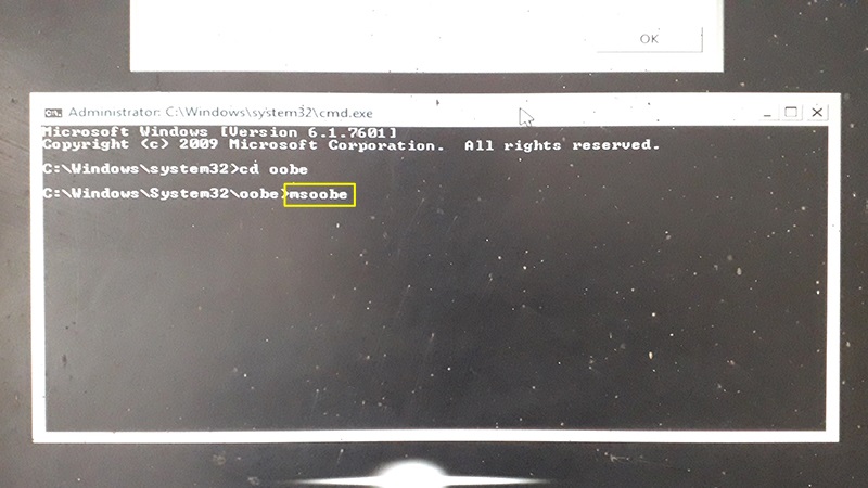 Bạn gõ tiếp dòng lệnh: "msoobe"