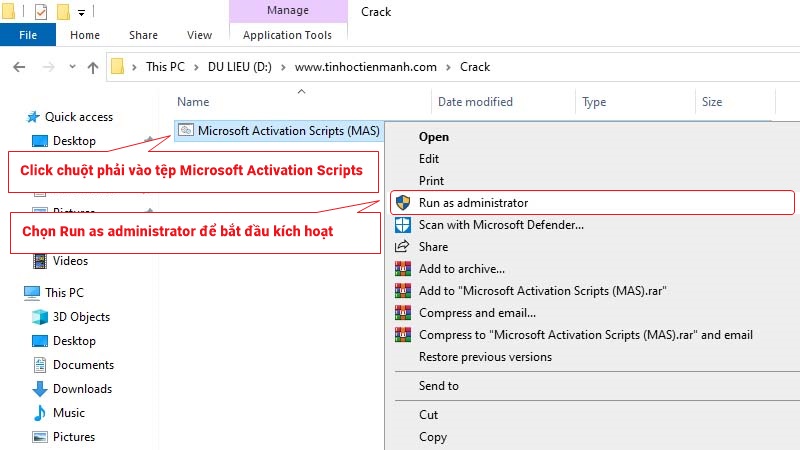 Click chuột phải vào tệp Microsoft Activation Scripts (MAS).cmd và chọn Run as Administrator.