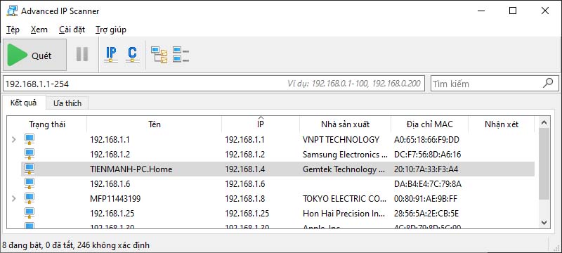 Quét danh sách thiết bị trong mạng LAN - Advanced IP Scanner free