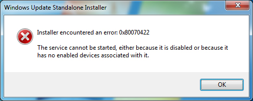 - Lỗi Installer encountered an error 0x80070422: Nguyên nhân service Windows Update chưa được bật. Bạn vui lòng bật service Windows Update.