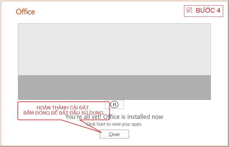 - Bước 4: Hoàn thành cài đặt Office 2019